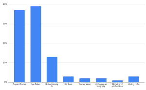 Khi cạnh tranh Tổng thống năm 2024 giữa 5 người với cử tri ủng hộ Trump 37%, Biden 39% , Kenedy Jr. 13%, Stein 3% và West 2% theo cuộc thăm dò mới nhất của NBC News Poll trong tháng 4